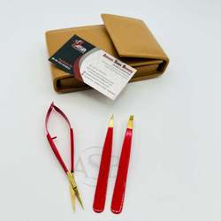 Vàng Đỏ nhíp lông mày tùy chỉnh bền vững thép không gỉ nghiêng nhọn trán Tweezer với Brow mùa xuân cắt kéo & trường hợp
