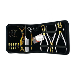 2024 mới nhất đến tóc mở rộng Công cụ Kit với tùy chỉnh phụ kiện trong tan hoặc màu be màu sắc với biểu tượng tùy chỉnh ghi nhãn